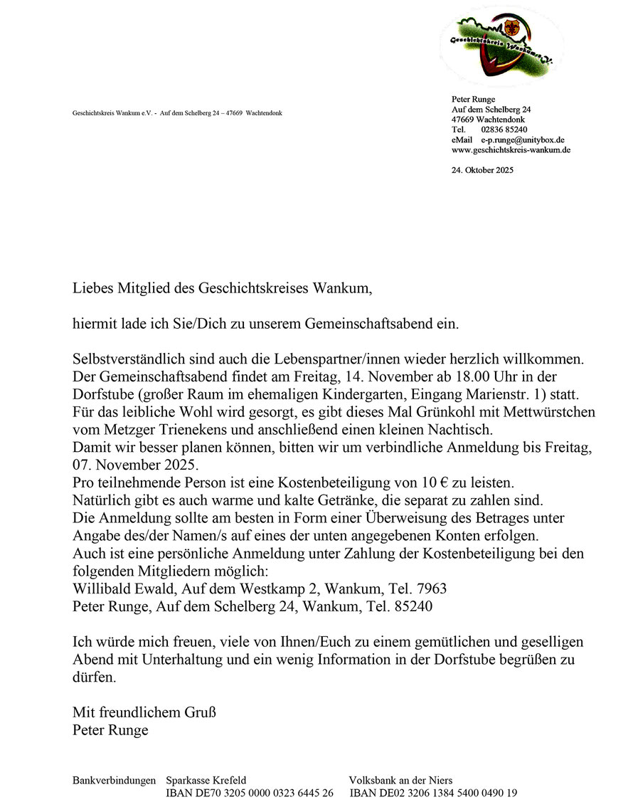 Geschichtskreis Wankum e.V., Auf dem Schelberg 24 – 47669 Wachtendonk-Wankum